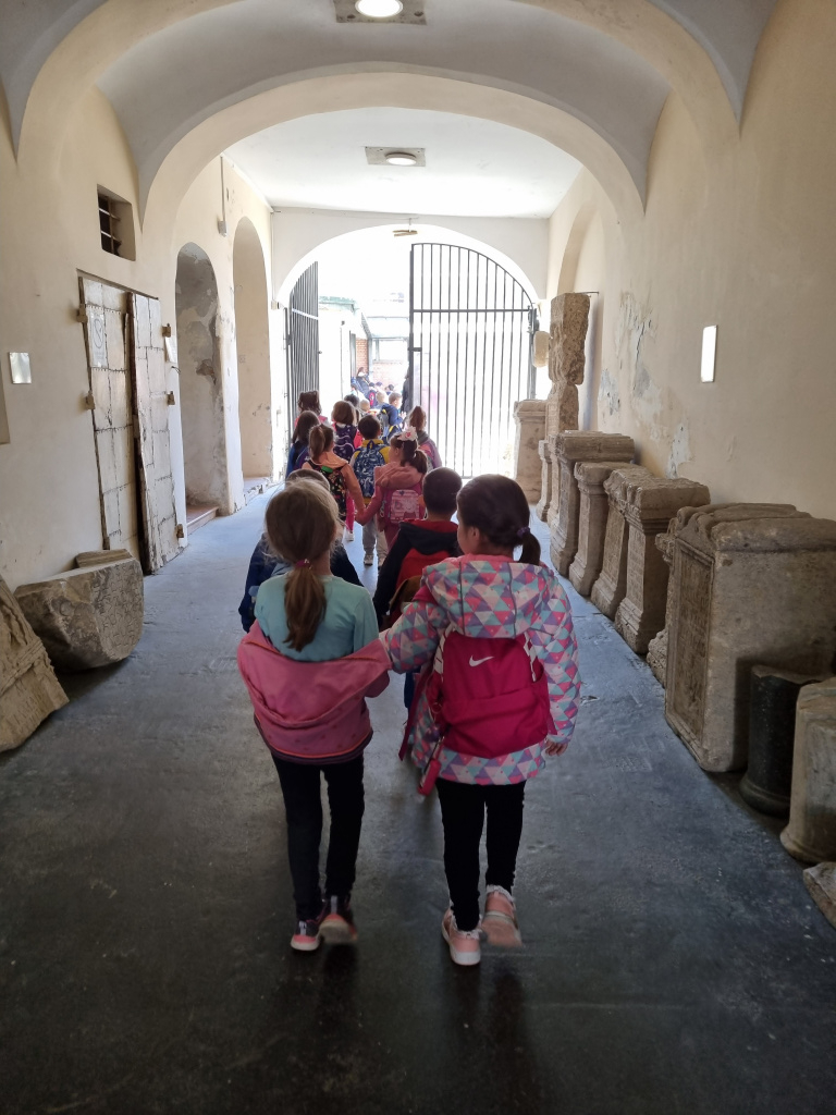 Уз осмехе и добро расположење, упутили смо се ка Лапидаријуму Музеја Срема где смо се упознали са сталном археолошком поставком. Највише интересовања је изазвао Сунчани сат који мери време према положају сунца.