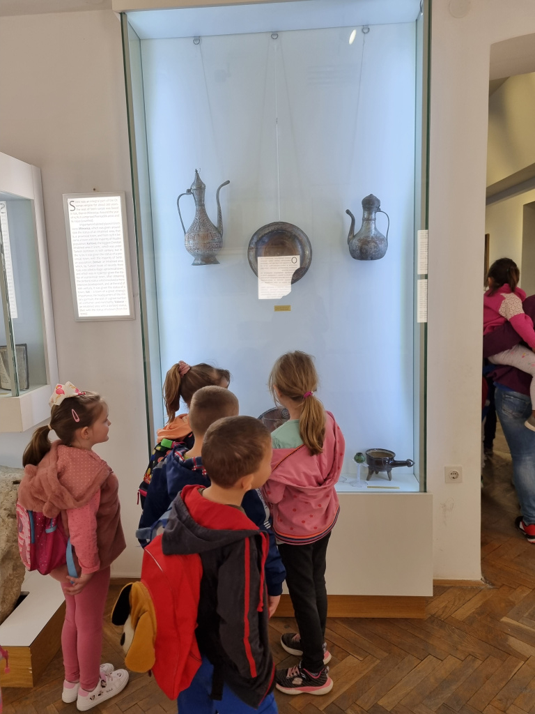 ncgДеца из сеоских вртића из Мартинаца, Кузмина, Шашинаца, Босута и Шуљма су са својим васпитачицама 6.04.2022. посетили Сремску Митровицу и обишли њене знаменитости. Љубазни домаћини из Туристичке организације Града Сремска Митровица су децу дочекали и угостили најпре у Туристичком инфо-центру. Другара из вртића је интересовало како се постаје туристички водич, па су нам домаћини дали одговор на то питање. Даље, деца су се упутила у Музеј Срема где су имала прилике да погледају сталну поставку музеја (збирку метала разнородних предмета који су кориштени у војне сврхе до предмета који су кориштени у свакодневном животу, збирку керамике из периода од 16. до 18. века, збирку стакла, збирку светиљки...).